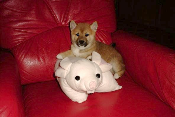 | Ich bin ein kleiner "Schmusebär". Mit mir kann man fast alles machen. So wurde ich auf ein Bobby Car gesetzt und durchs Zimmer geschoben, was ich interessant und sogar schön fand.. Mein Name Enjo ist japanisch und bedeutet "Unterstützer". Naja, ich unterstütze meine Familie, indem ich sie beim Leckerli verbrauchen unterstütze. Wie alle Shibas spiele ich auch furchtbar gerne mit aller Art von Bällen, vor allem Tennisbälle haben es uns angetan. |