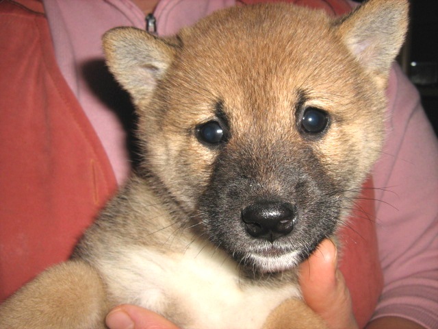 | Jetzt komme ich dran. Mein Name ist japanisch und bedeutet auf deutsch "Gehilfe". Was ich später mal helfe weiß ich nicht, aber momentan helfe ich meinen Geschwistern den Freßnapf auszuschlecken. Also bin ich doch schon ein Gehilfe, oder nicht ? Mich kann nichts aus der Ruhe bringen. Ich höre schon ziemlich gut auf meinen Namen, vor allem wenn ich gehört habe, daß meine Züchterin vorher mit unseren Freßnäpfen rumgemacht hat. Dann ein Ruf: "Joshu" und zack bin ich da. Liebe geht doch durch den Magen. |