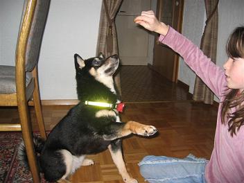 Mit meiner menschlichen Schwester bringt mir viele Kunststücke bei. |