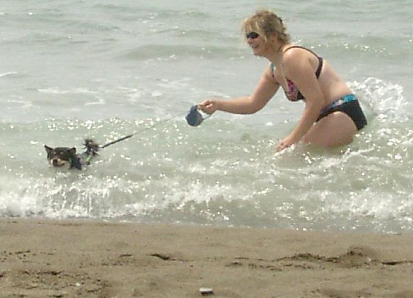 Im Urlaub an dem Hundestrand da gab es für mich reichlich Sand Das Wasser das war ziemlich nass, das machte meiner Herrin Spaß ! |