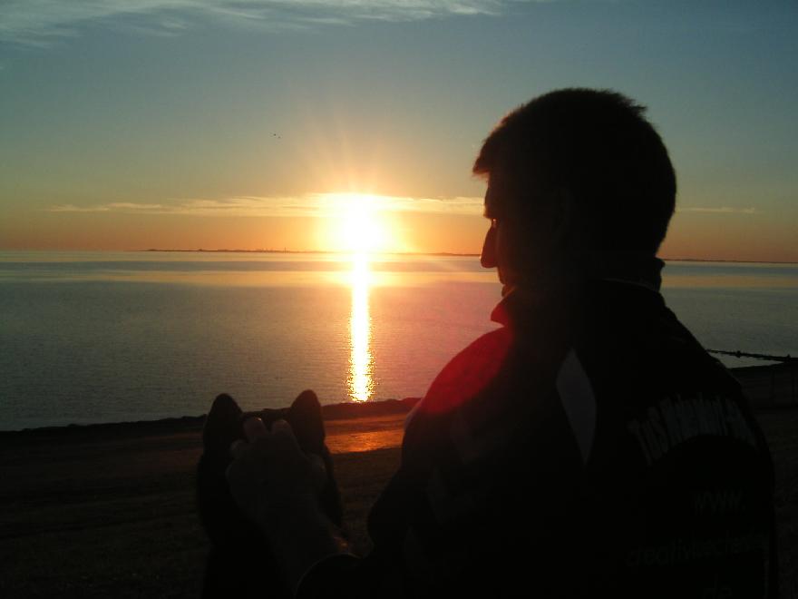 Hier beobachte ich im Urlaub mit meinem Herrchen den Sonnenuntergang |