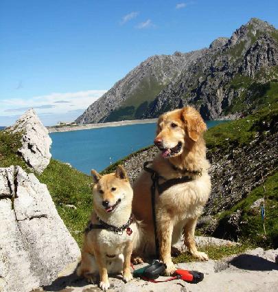 Wir Hunde wandern ja wirklich gerne im Urlaub, aber hoffentlich ist im Rucksack auch Hundefutter für mich drin. |