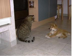Also abgemacht ! Du stehst Wache und ich hole alles Leckere aus dem Kühlschrank der Menschen raus ! |