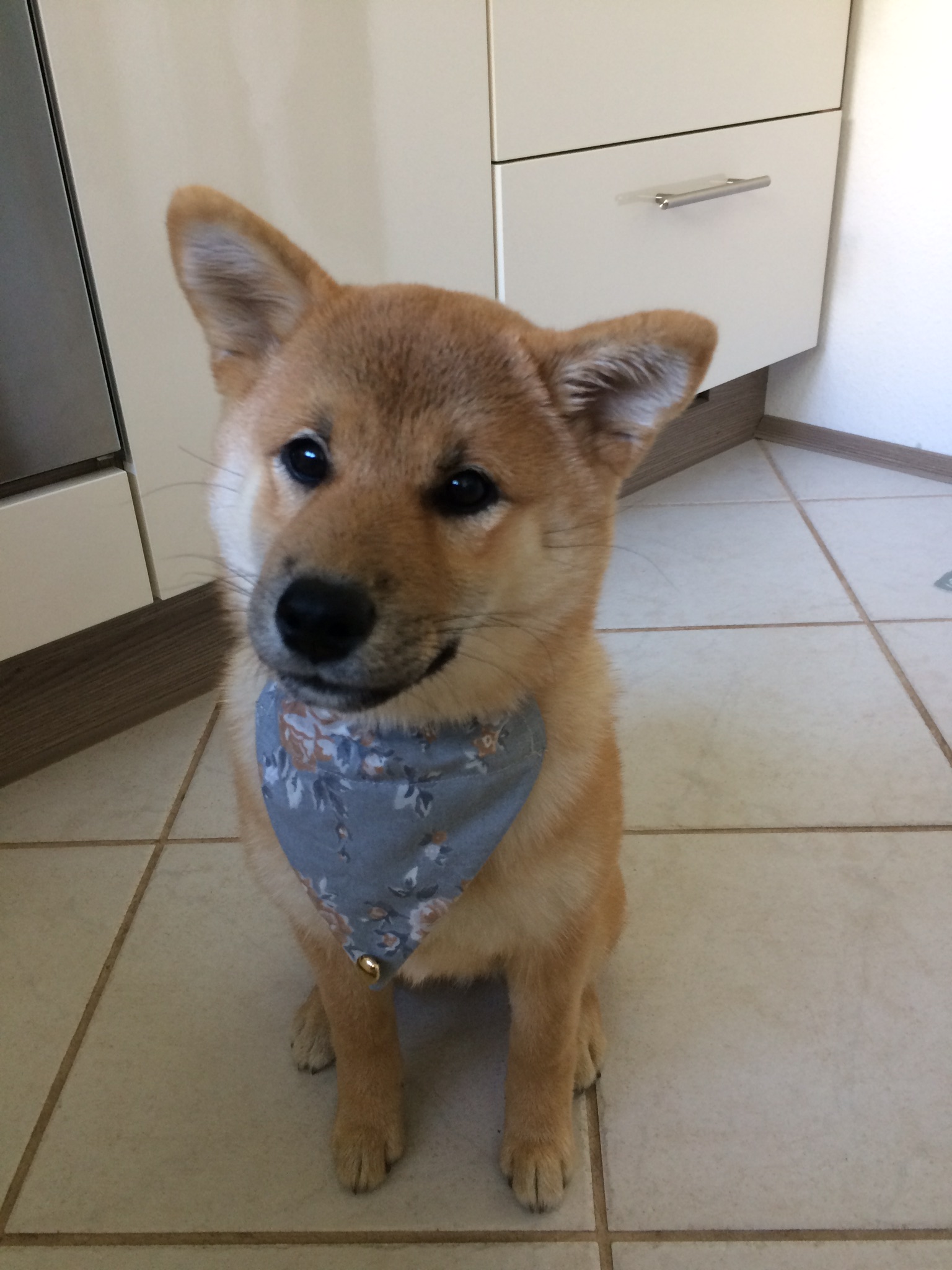 Meine Besitzerin näht für mich genre Lätzchen und ich darf sie tragen. |